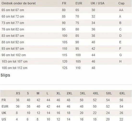 | Maat | 80AA, 90AA, 100A, 70A, 70B, 70C, 70E, 75AA, 75A, 75B, 75D, 75E, 80A, 80D, 80E, 85A, 85B, 85C, 85D, 85E, 90A, 90D, 90E, 95B, 95C, 95D, 95E, 100B, 100C, 100D, 100E, 95A |