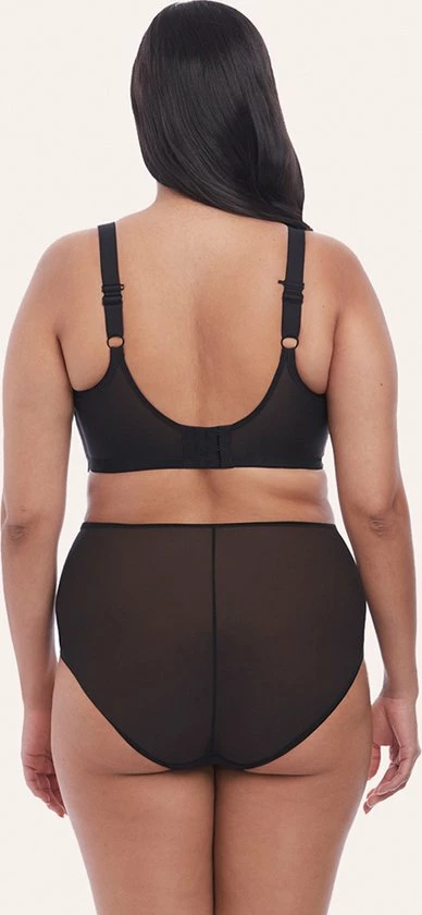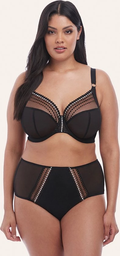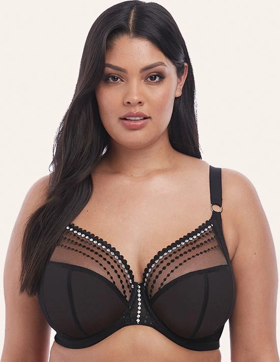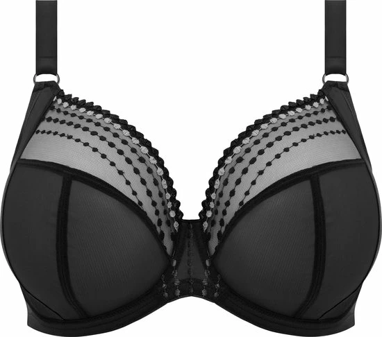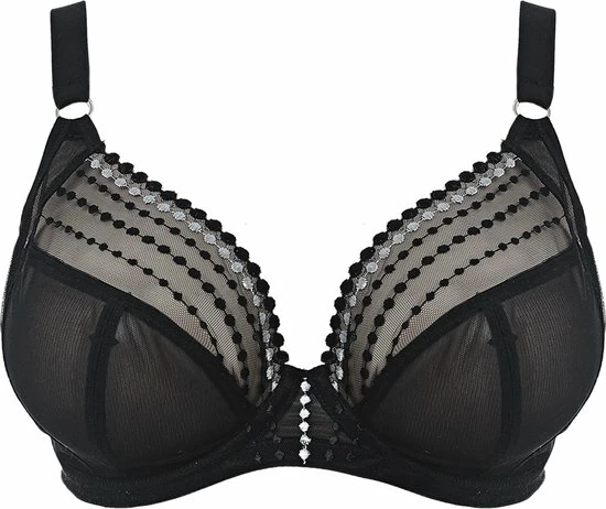 Elomi Matilda plunge beugel BH is een transparante bh in de kleur zwart. De bh is gemaakt van mesh stof die afgewerkt is met een stippen borduurwerk. De driedelige cups met side support geeft extra stevigheid. Het plunge model zorgt voor een extra sexy en jonge look.