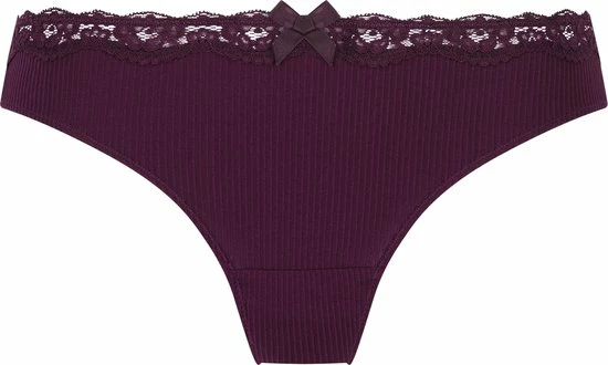 Deze string is gemaakt van een ribstof en is afgewerkt met een kanten randje aan de bovenkant. Het strikje in het midden maakt de string helemaal af! Combineer met de bijpassende bh voor een complete set!
