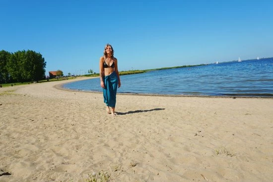 Jovi – Sarong Groen van het merk Jovanka – De klassieke Jovi Sarong Groen van Jovanka swimwear is de perfecte metgezel op het strand of bij het zwembad. Gemaakt van lichtgewicht materiaal en voor de zomer essentieel. Verkrijgbaar in 3 kleuren. Hoe te dragen: Begin op je heupen en wikkel de jovi sarong groen rond je middel. Neem de twee uiteinden en draai de stof zo dat er een plooi ontstaat aan de voorkant van je rokje. Werk je rokje af door de twee uiteinden tussen je huid en de stof te stoppen of laat de uiteinden voor langs lopen. Een simpele techniek voor een rokje dat je de hele zomer door kunt dragen over je badpak en/of bikini. Materiaal: 100% Polyester. Afmetin 100 x 180 cm. Bekijk hier alle sarongs uit de Jovi collectie. Ons wasadvies voor lingerie en badmode is altijd handwas. Tip: bestel voor je delicate was een heerlijke fles SOAK , hiermee kun je je was in slechts 15 minuutjes laten “soaken” en bespaar je ook nog eens veel water. Jovanka is een nieuw Nederlands beachwear en swimwear merk. Het merk staat voor de moderne vrouw met al haar vormen en maten. Van felle kleuren en toffe prints tot badpakken en brazilian bikini’s. De eerste lancering van het merk heeft 6 bikini’s, 2 badpakken en 3 kleuren sarongs. In de maten S t/m 3XL. Exclusief te verkrijgen bij LIV bodyfashion – ontdek deze prachtige collectie nu online.