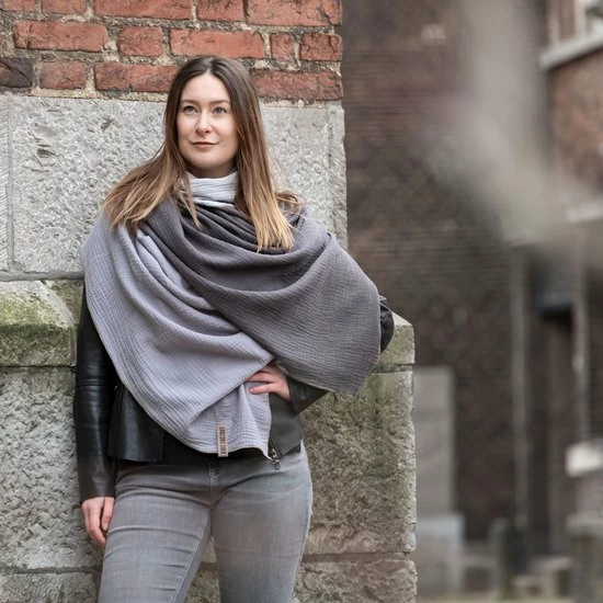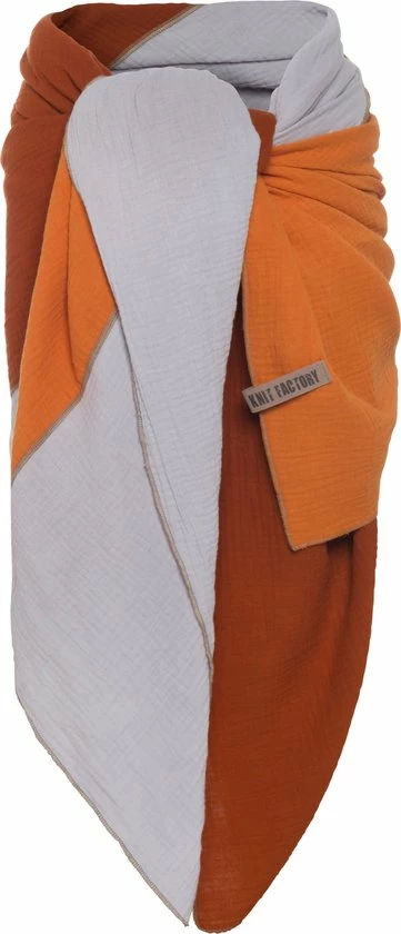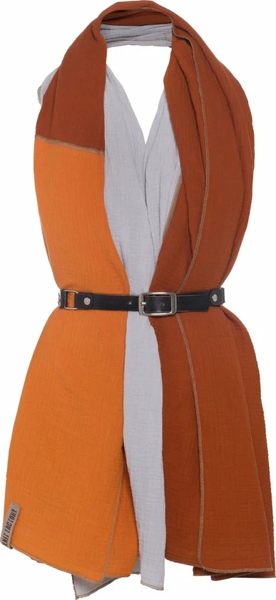 De driekleurige Fay pareo in verschillende kleurtinten is een multifunctioneel accessoire voor de zomer! Deze XL-mousseline-doek gemaakt van 100% biologisch katoen, kan worden gedragen als strandjurk, strandrok, sarong of oversized sjaal – het ideale accessoire voor op reis, strandvakantie of zonnebaden in je eigen tuin. Is het toch een beetje fris? Gebruik deze modieuze katoenen doek dan als sjaal of stola. Deze zachte doek is ook een praktisch accessoire als picknickkleed of deken in het vliegtuig. Door het fijn geweven biologische katoen droogt het strandlaken snel en voelt de mousseline stof heerlijk soepel aan. Het typische vegan leren label van Knit Factory en het patchwork patroon met de kleuren terra, roest en lichtgrijs geven dit strandlaken een stoere uitstraling. De pareo is 180×130 cm en is verkrijgbaar in vele kleurcombinaties.