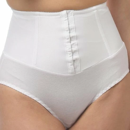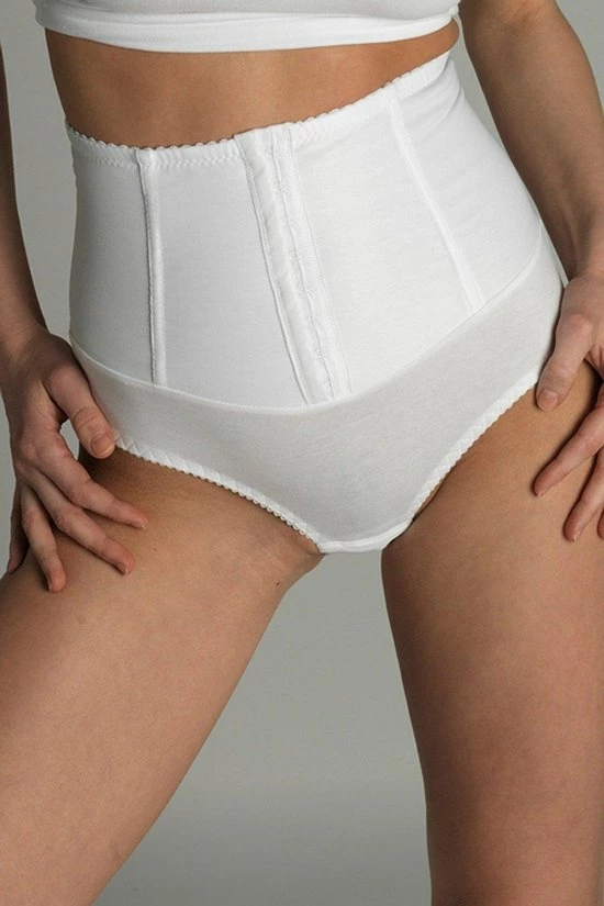 Gemaakt van moderne elastomeren met een grote hoeveelheid katoen. Te dragen tijdens postnatale periode, en elke dag om een figuur te vormen. Dit model is gemaakt als een korset met een verhoogde hoge lijn en een verticale harde voering. Comfortabele lagere haak met haken. Door de haken en makelijke opening hoeft hij niet steeds geopend te worden.