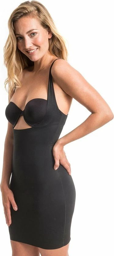 De Maxi Sexy Dress is gemaakt van een ultra glad materiaal en kan met eigen bh gedragen worden. Het jurkje is naadloos en geeft een sterke shaping aan je buik, heupen, rug en bovenbenen. De jurk blijft goed op haar plek doordat er een speciaal siliconen randje is aangebracht aan de onderzijde van de jurk. De schouderbandjes zijn verstelbaar en aan de achterzijde afneembaar om ze ook te kunnen kruizen. Dit product is verkrijgbaar tot en met maat 4XL!