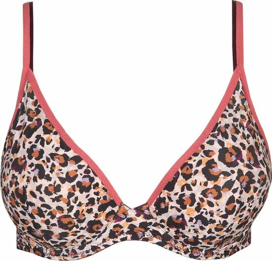 Deze sensuele beugelbh heeft een diep decolleté. Een gedurfde luipaardprint op gerecycleerde tule zet de cups in de verf. Pot Pouri is een speelse trendkleur die zich perfect leent voor een toon-op-toon effect. Wasvoorschrift: niet bleken, geen professionele reiniging, niet trommeldrogen, 30 °C fijn programma, niet strijken. Samenstelling: Polyamide: 50%, Polyester: 39%, Elastaan: 11%