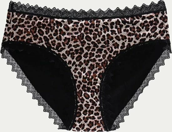 Met dit mooie menstruatie ondergoed voel jij je veilig, sexy en comfortabel zowel overdag als ‘s nachts tijdens jouw menstruatie periode. Mooi en sexy low rise model met luipaard print en zwart kanten bovenkant en randen.