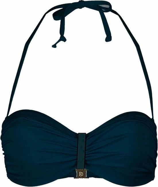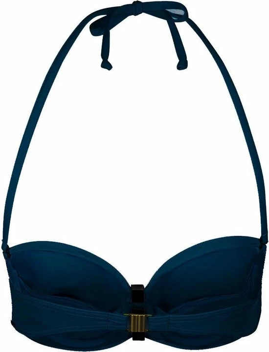 De voorgevormde bandeautop Riviera heeft een mooie, diepblauwe kleur. Het rode accessoire in het midden geeft de bandeau een speelse uitstraling. De top is ook strapless te dragen. Combineer deze trendy bikinitop met de het bijpassende bikinibroekje!