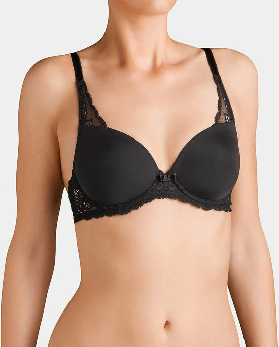 - Met een chique kanten inzet langs de cups en bij de bandjes